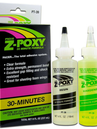 This glue is FAST!! It travels fast and sets up fast. It will bond skin instantly. Because of this glues wicking ability it will travel along an edge or seam for several inches. It will penetrate deep in to a crack just by applying the glue at one end. When bonding balsa wood, hold the parts together and apply a small amount of glue at the seam where the parts meet. The glue will penetrate the joint and wick into the balsa parts. Don’t hold the balsa to close to the joint or you will find that you are glued to your parts. For porous products you may have to apply more glue to get the strongest bond, it would be best to try bonding some test pieces to determine the proper amount. When sealing and hardening wood parts use in a well ventilated area and work on small sections. Do not use kicker with this glue, in most cases the glue will have set before you can apply the accelerator. For critical applications test sample joints for designed strength requirements.